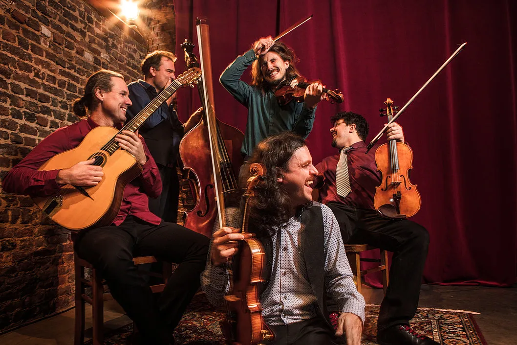 Les violons de Bruxelles ont repris le format légendaire du Quintette du Hot Club de France et l'ont renversé ; la contrebasse est toujours bien présente, mais le reste de l'instrumentation est exactement le contraire : une seule guitare et... trois violons.