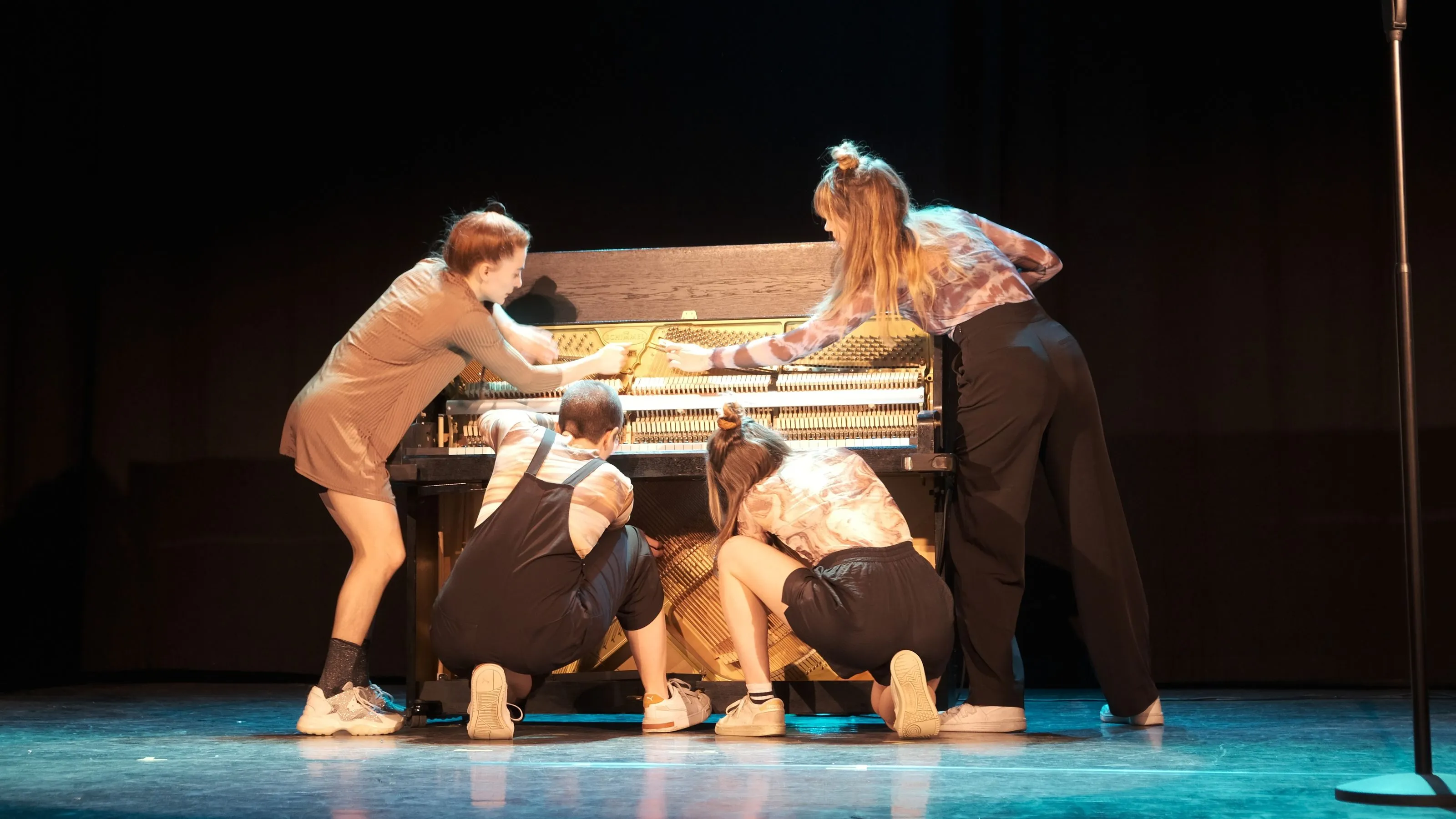 Astrid Akay et Victoria Lewuillon, texte et jeu / Duo Haelix : Marion Maurel et Sophie Vindrios, piano / Virginie Tasset, compositrice et directrice artistique / Julie Peyrrat, regard extérieur / Mise en scène collective / Laurent Delforge, mixage pistes électroniques